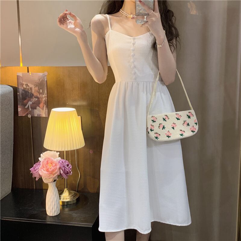 ホワイトワンピース夏服ロングスカート 大人ガーリー スウィート キュート カジュアル 夏物 SYJ30309995809