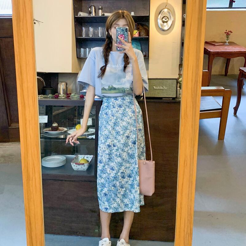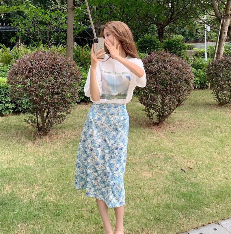 色:ブルーTシングルピース,ホワイトTシングルピース,花柄スカートワンピース