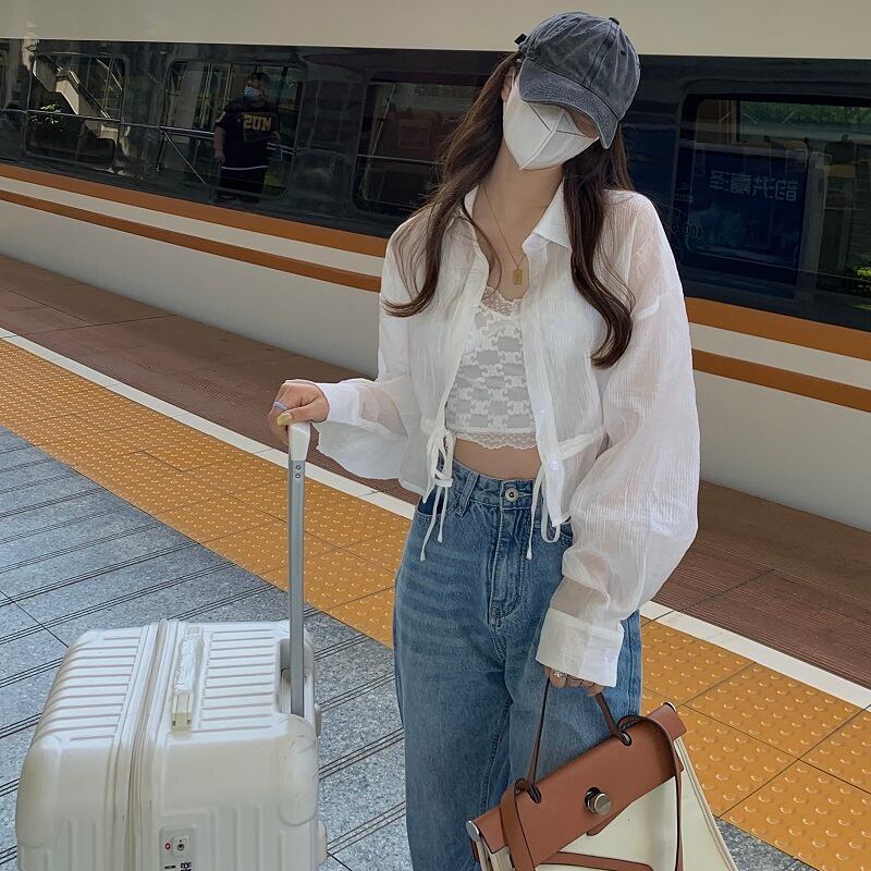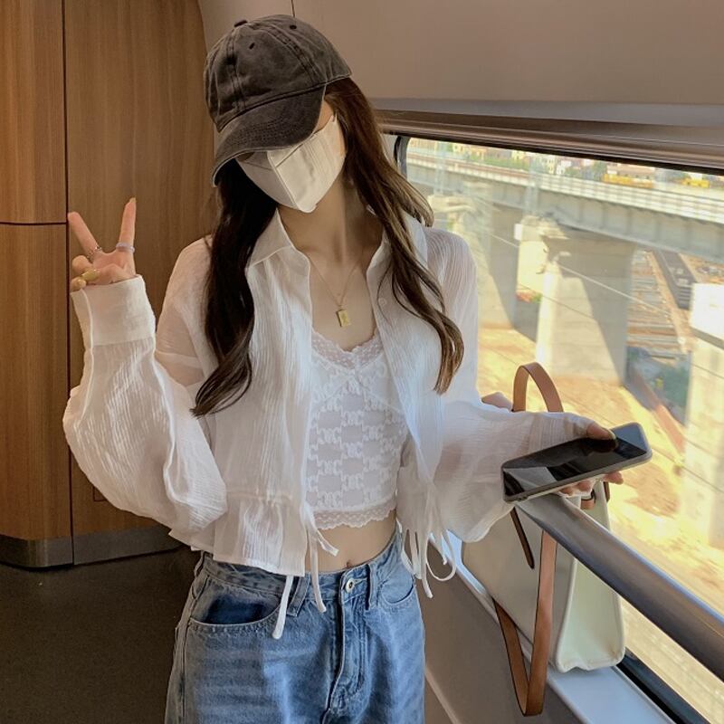 シャツ ジャケット カーディガン夏服韓国ファッション長袖スリーブショートトップス ロング 夏物 SYJ70706388404