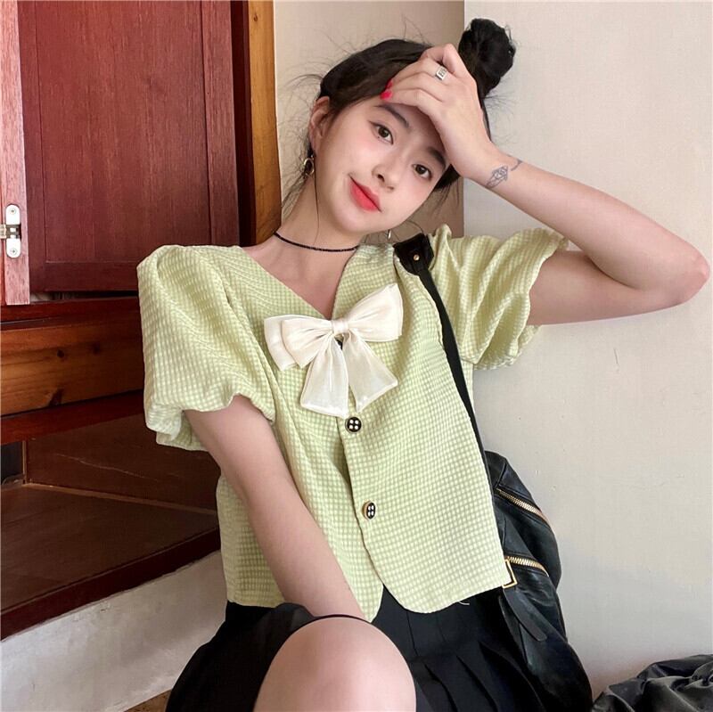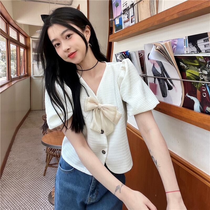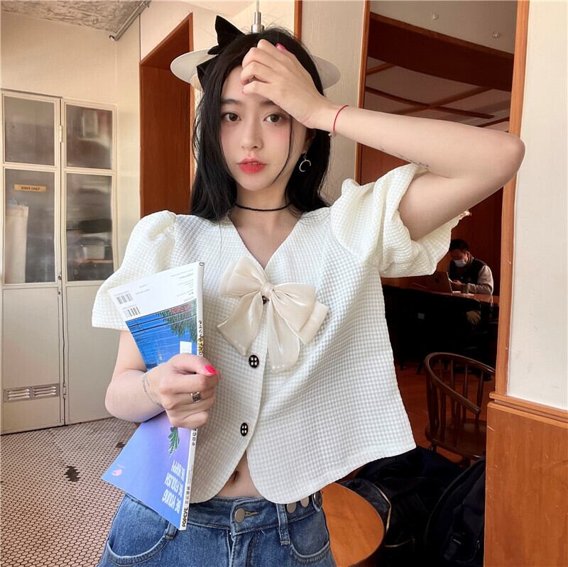 ショートトップス 夏服リボンスリーブシャツ 夏物 SYJ19810555622