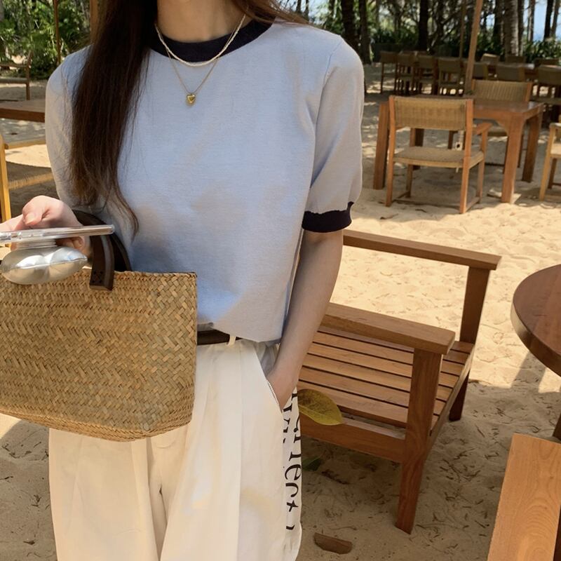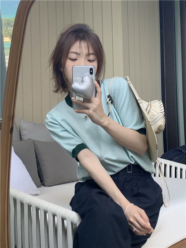 グリーンニットTシャツ夏服トップス 夏物 SYJ62354903189