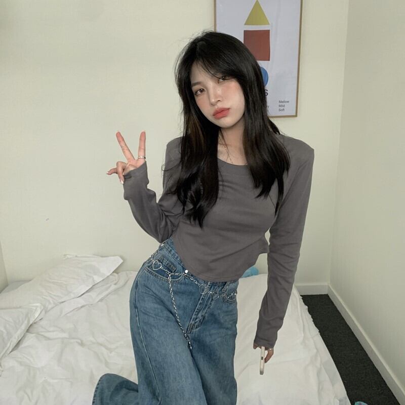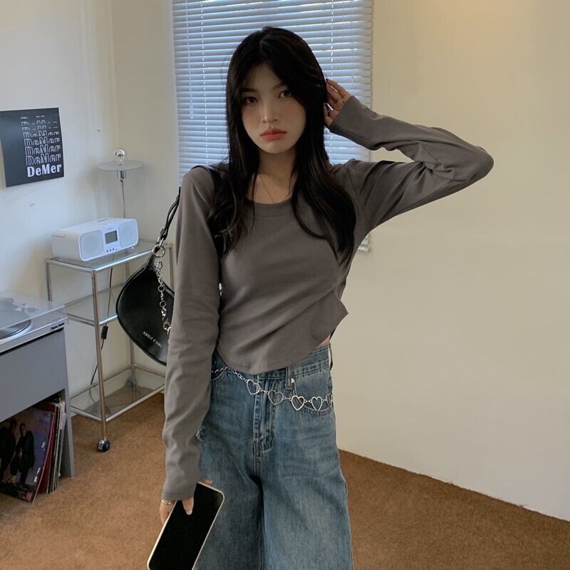 ショートTシャツシャツ スプリングゆったりトップス ロング 春物 長袖 SYJ40616407284