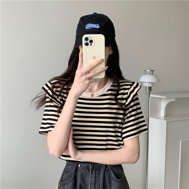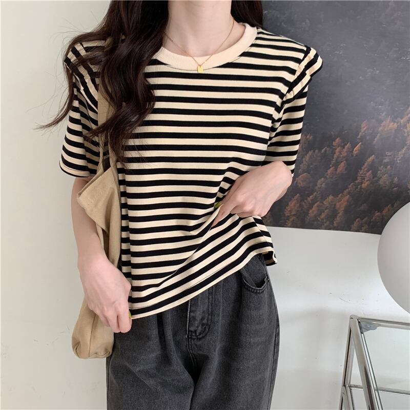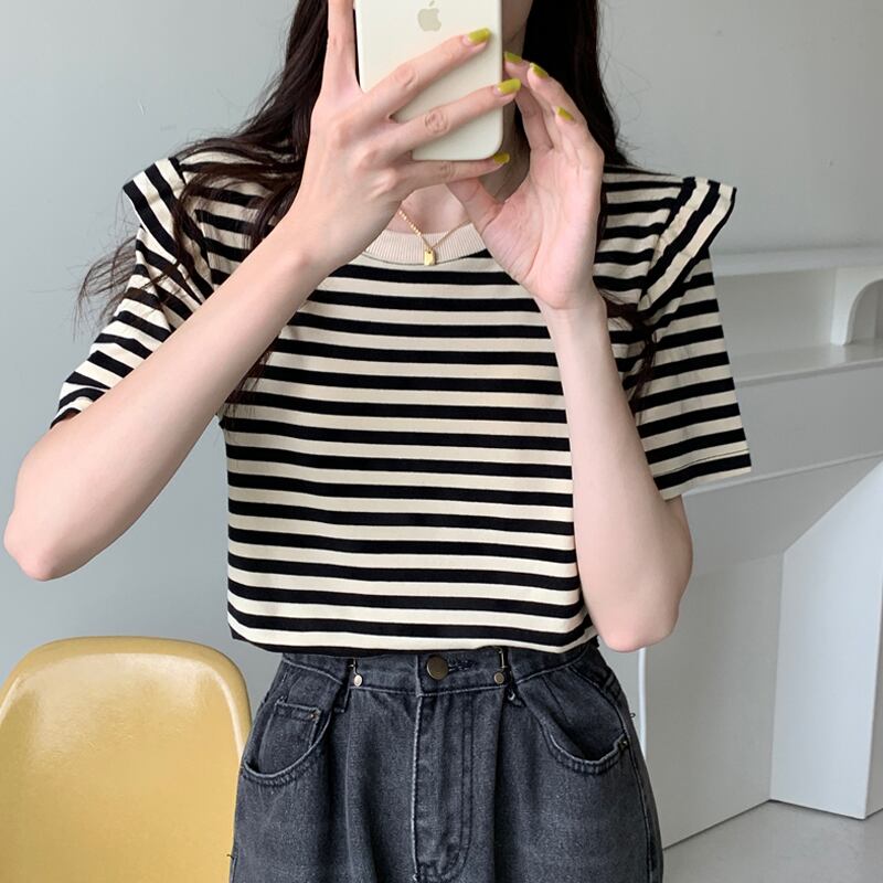 ストライプTシャツ夏服トップス NEW レッド 夏物 SYJ25791895575