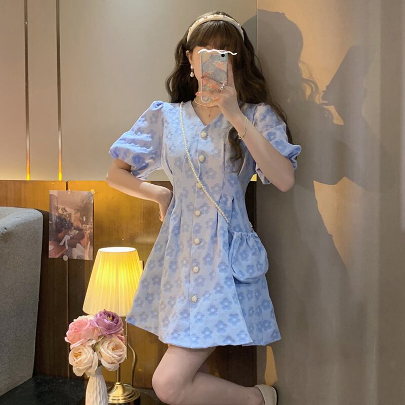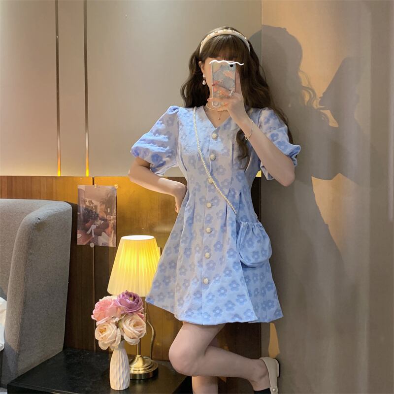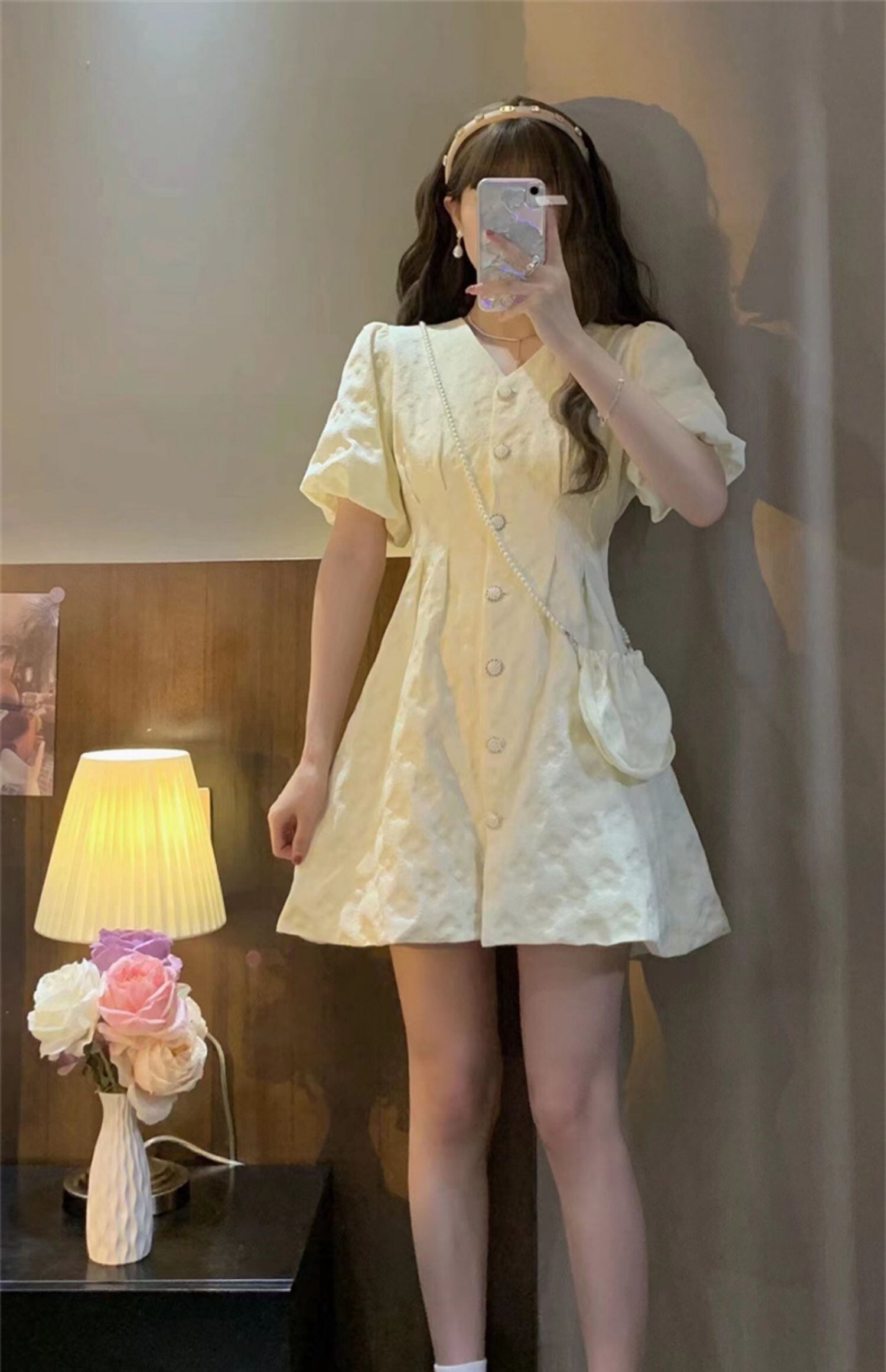 韓国ファッションスタイルワンピースレディース夏服ウェストショートスカート 大人ガーリー スウィート キュート カジュアル 夏物 ウエスト SYJ2103785700