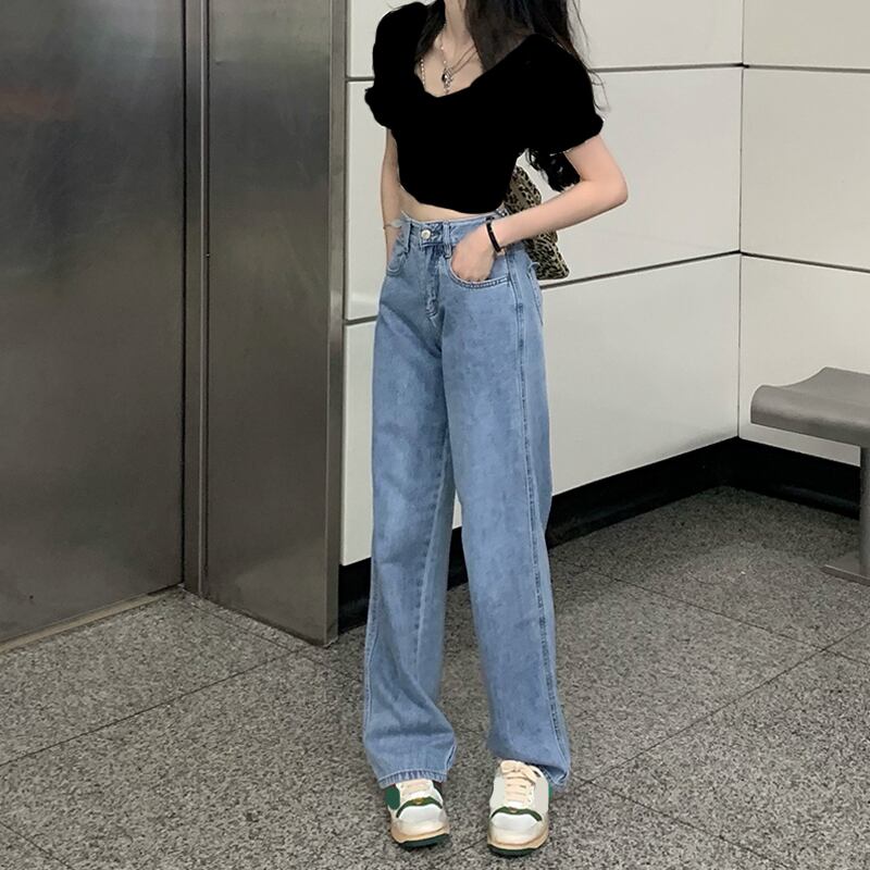ハイウェストウェストジーンズ レディースルーズ夏服ワイドレッグパンツ NEW 夏物 ワイドパンツ ウエスト SYJ8102472710