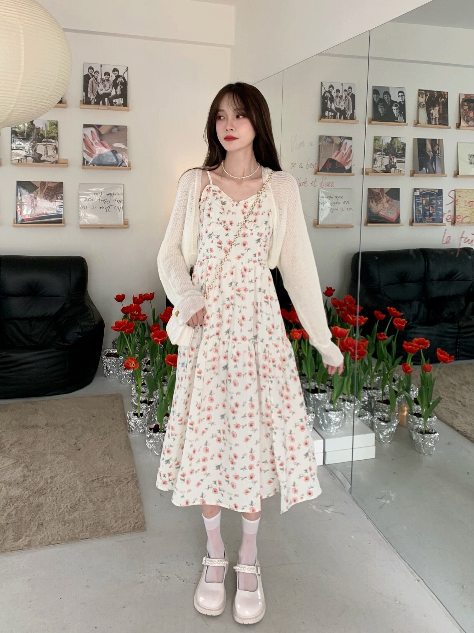 色:ショール一枚,ショートワンピースフローラルスカート,ワンピースロングフローラルドレス