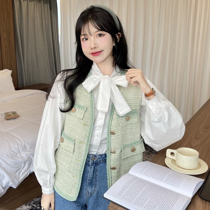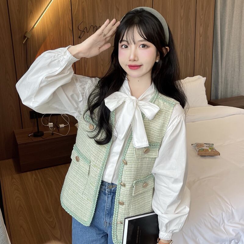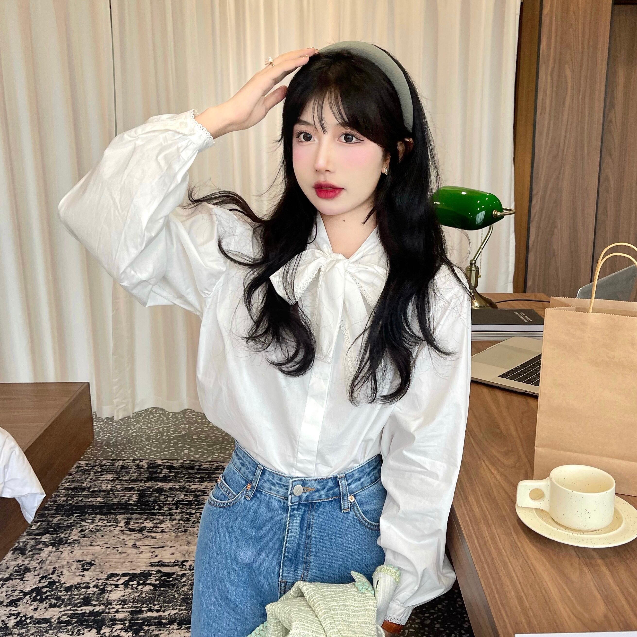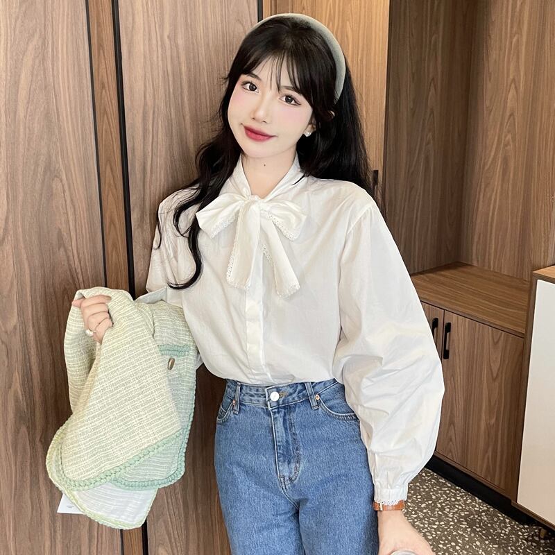 ホワイトリボンシャツ スプリングスタイルトップス 春物 SYJ68292415516
