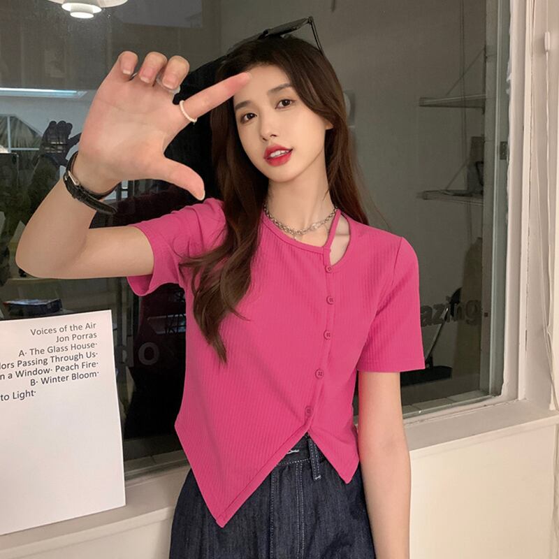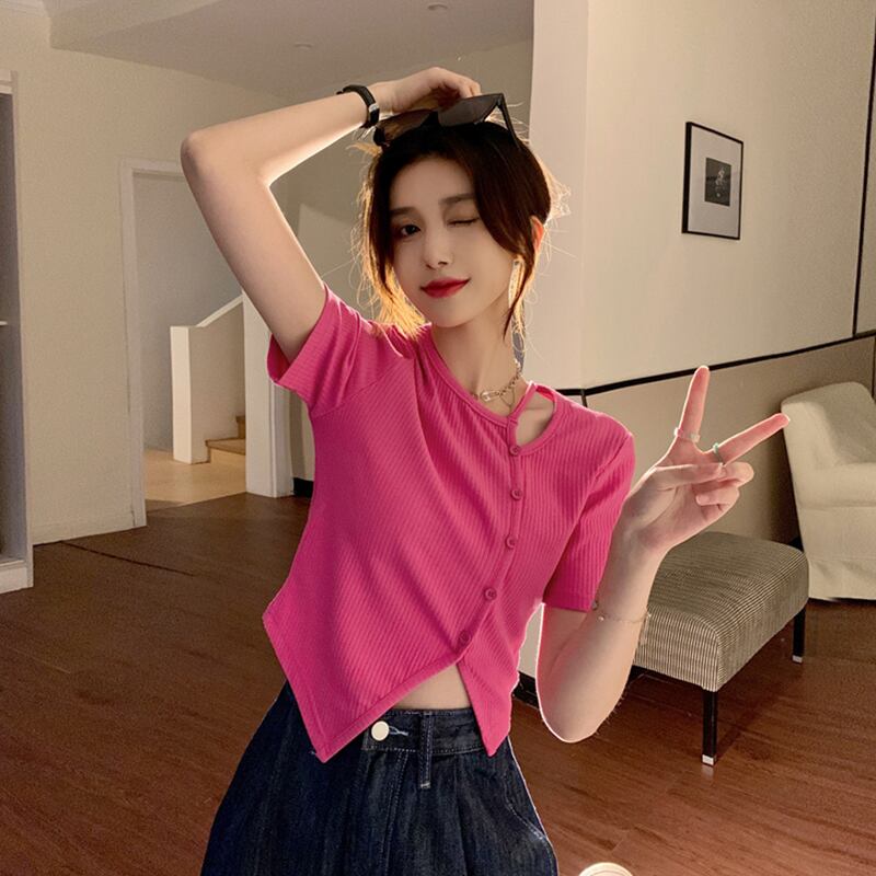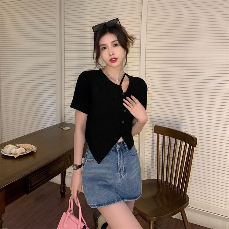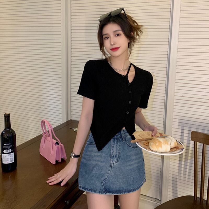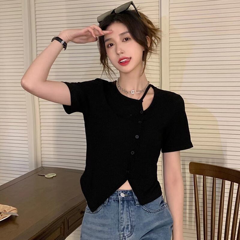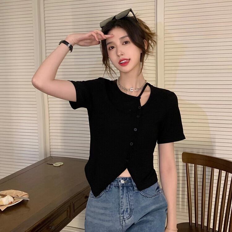 ブラックショートTシャツ夏服トップス 大人ガーリー スウィート キュート カジュアル 夏物 ピュア SYJ44917279347