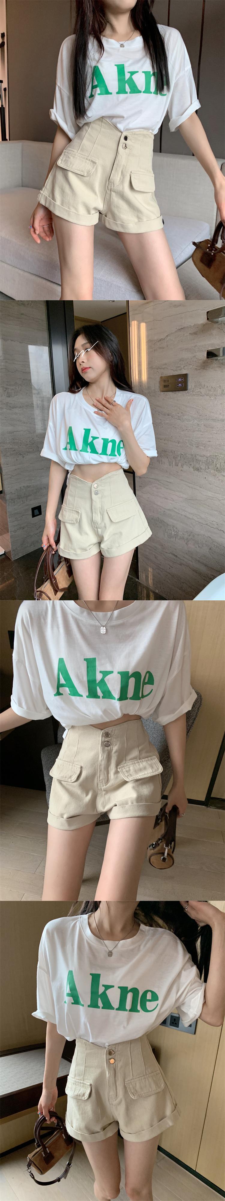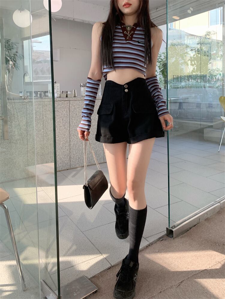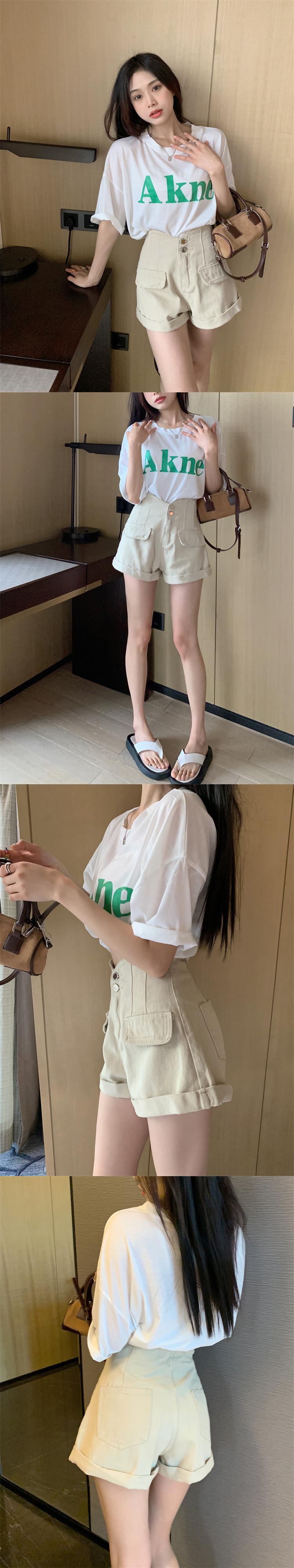 カーキショーツ 夏服ハイウェスト薄手Aラインパンツ 夏物 ウエスト SYJ57982460648
