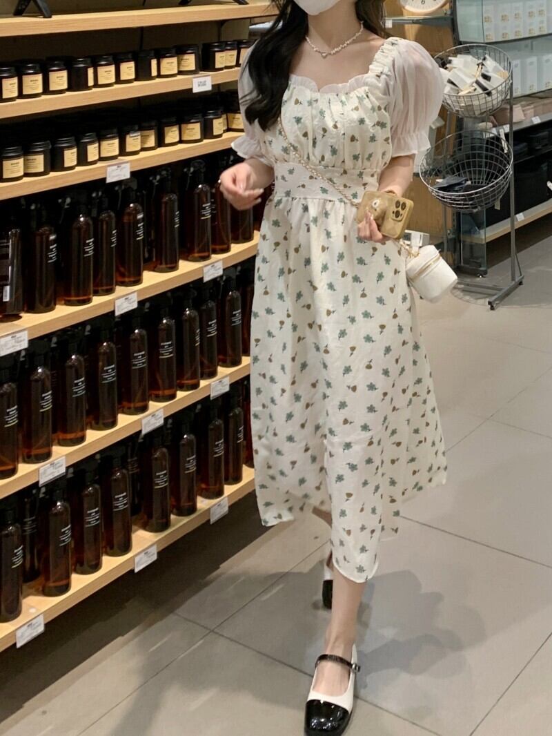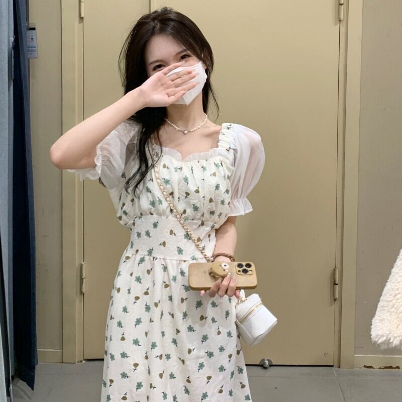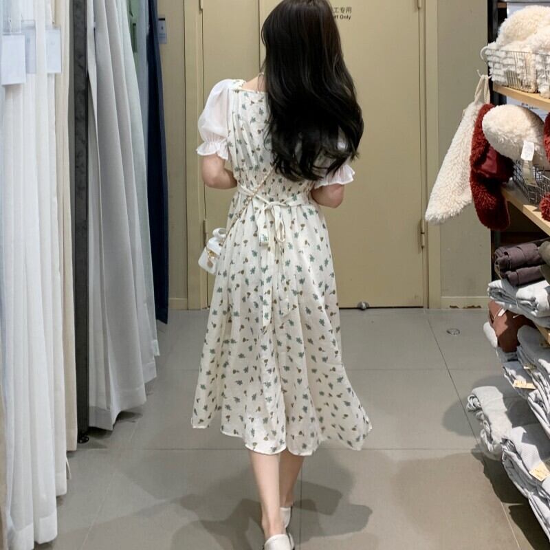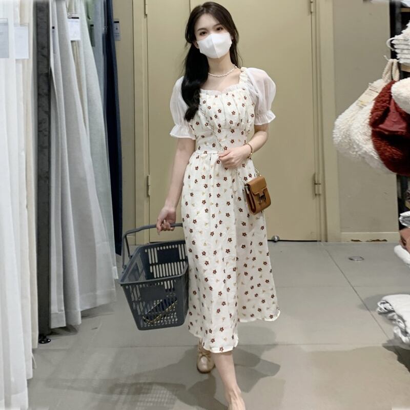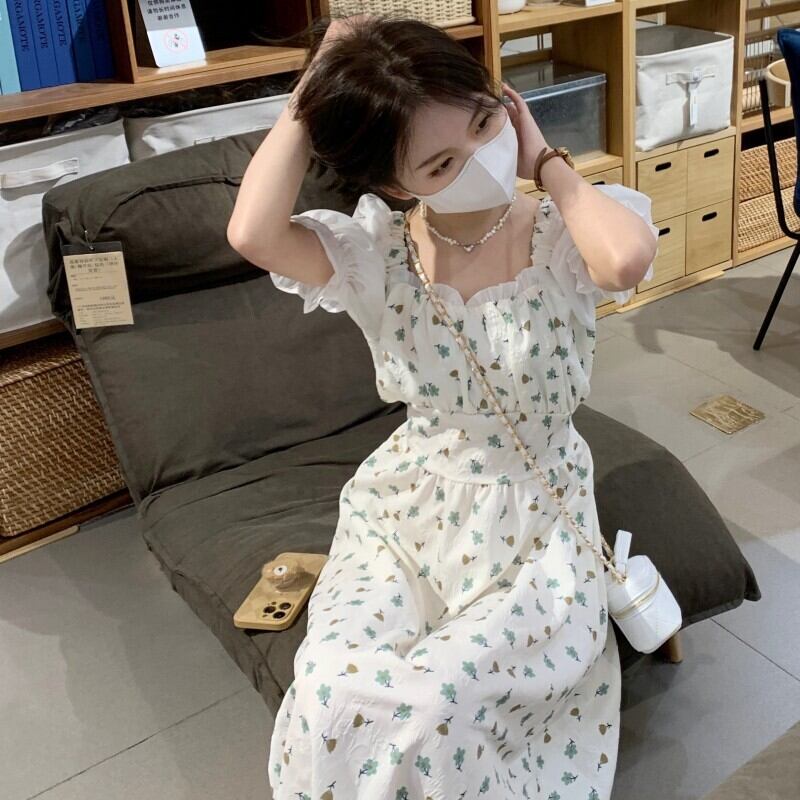 スリーブフローラルワンピース夏服スカート 大人ガーリー スウィート キュート カジュアル 夏物 花柄 SYJ71255162855