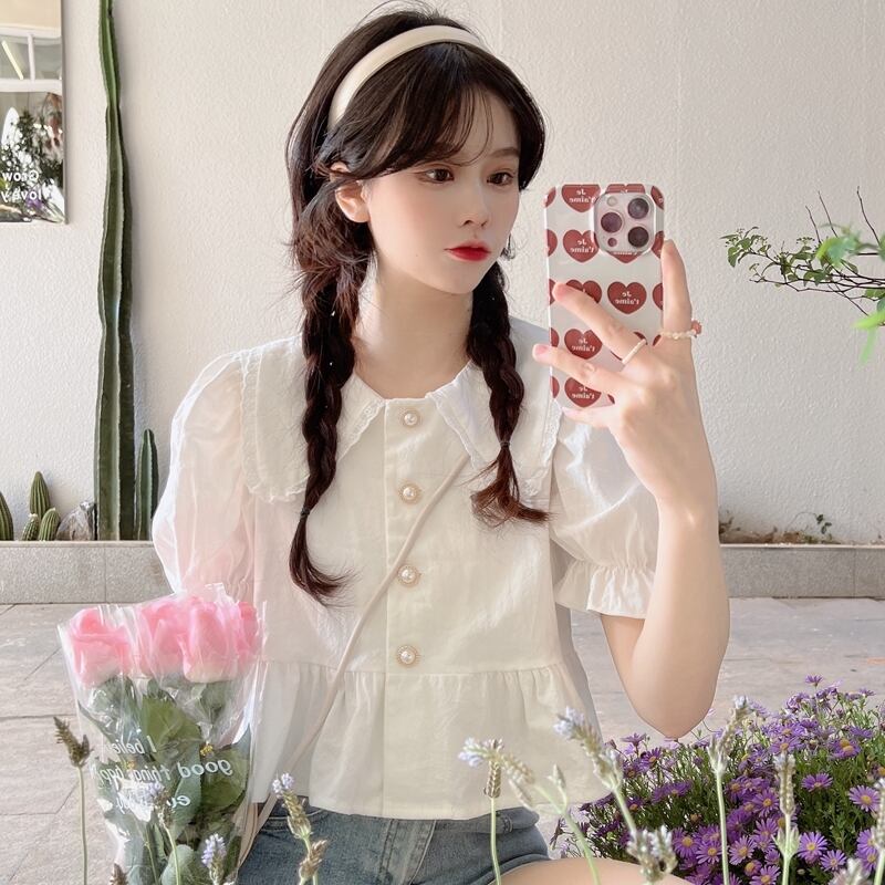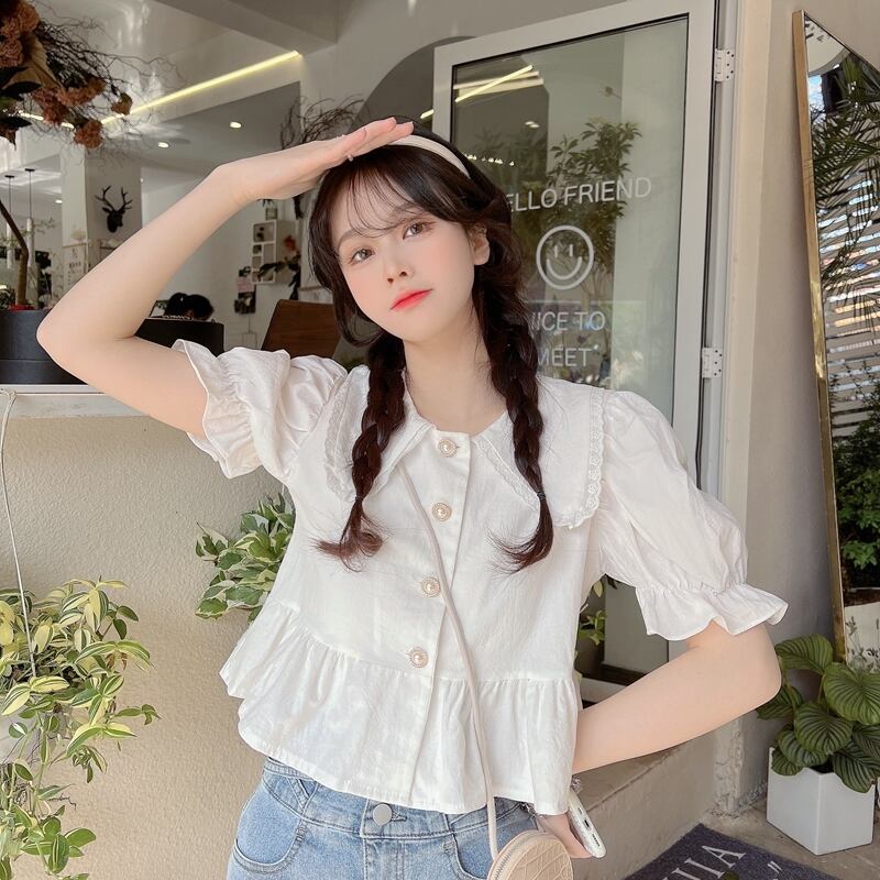 ショートトップス 夏服韓国ファッションスタイルカラーホワイトシャツ 大人ガーリー スウィート キュート カジュアル 夏物 SYJ61248886056