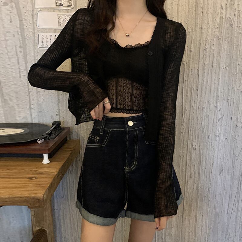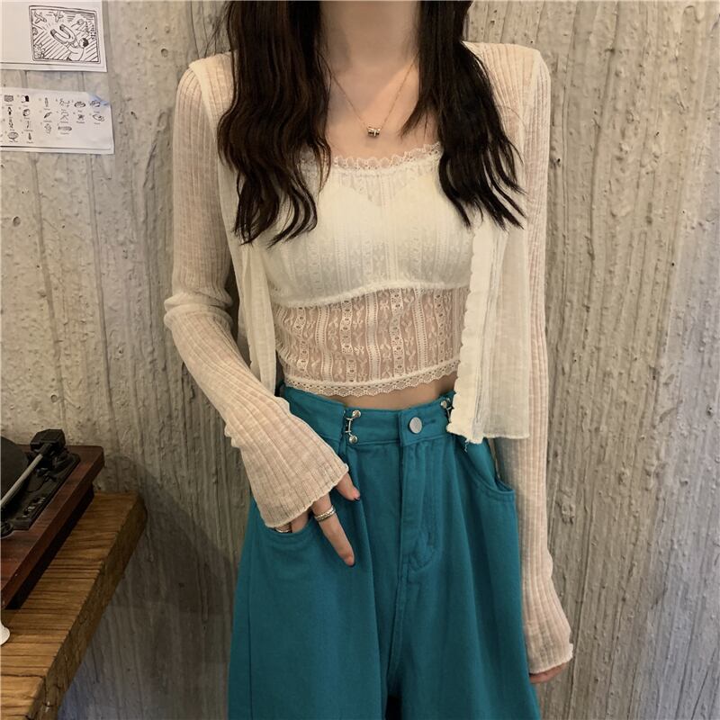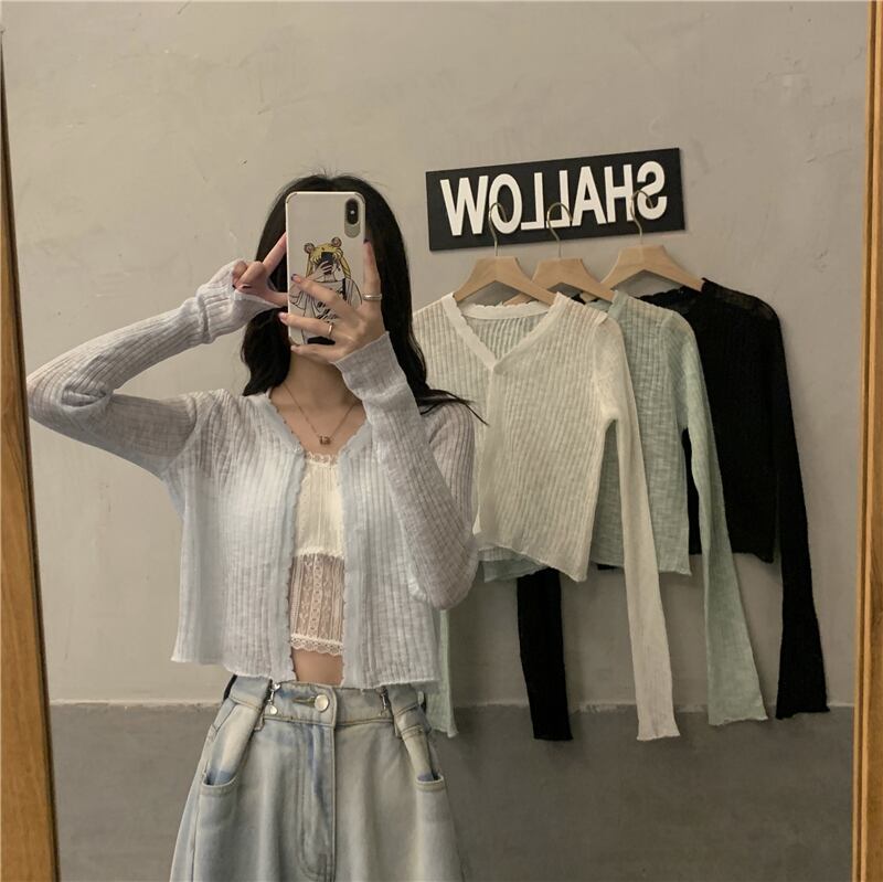 ブルーニットカーディガン夏服薄手ショールショートトップス 大人ガーリー スウィート キュート カジュアル 夏物 SYJ6829272522