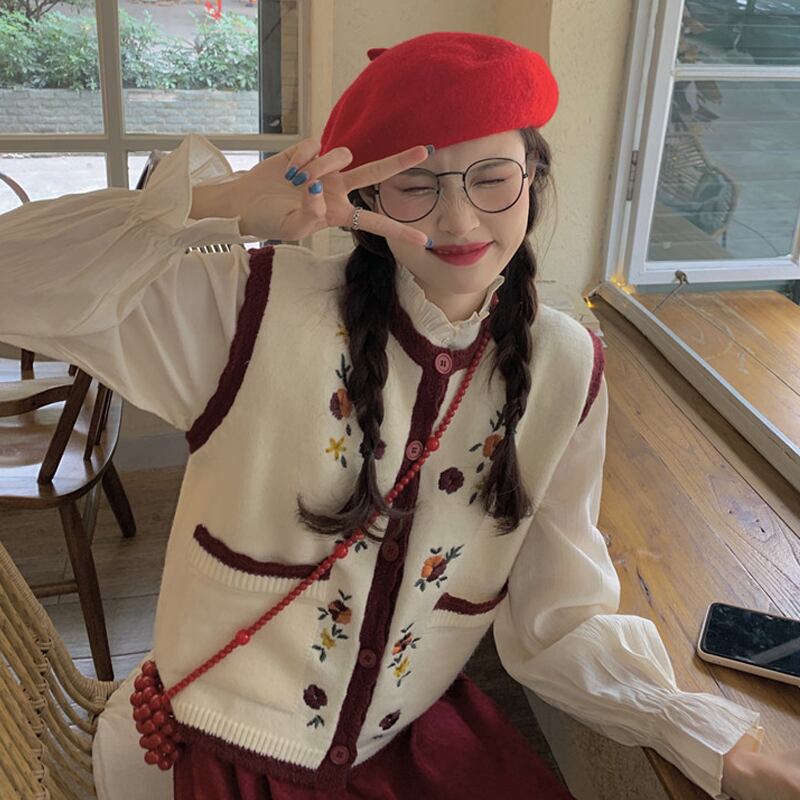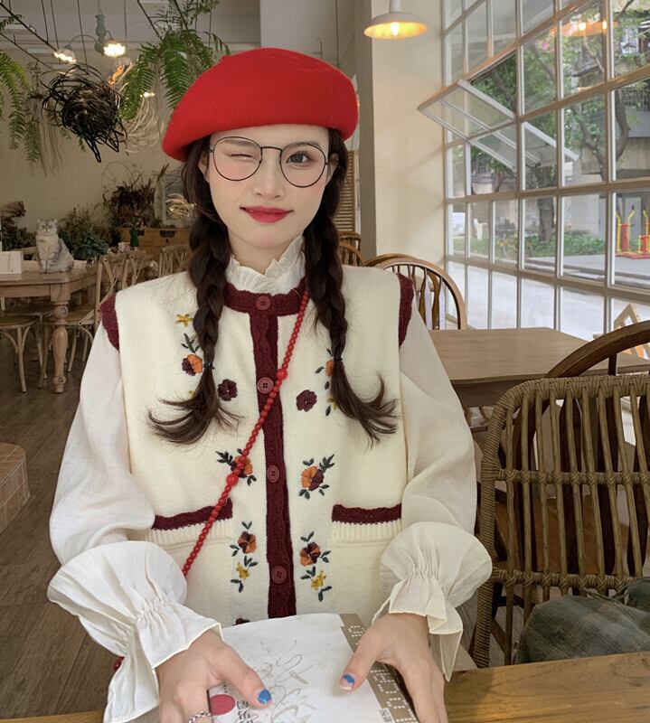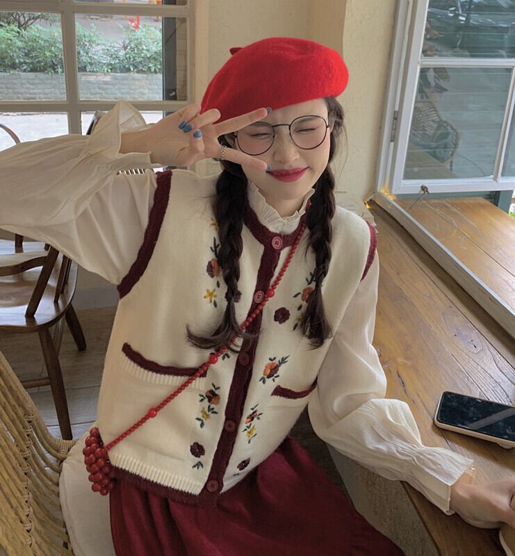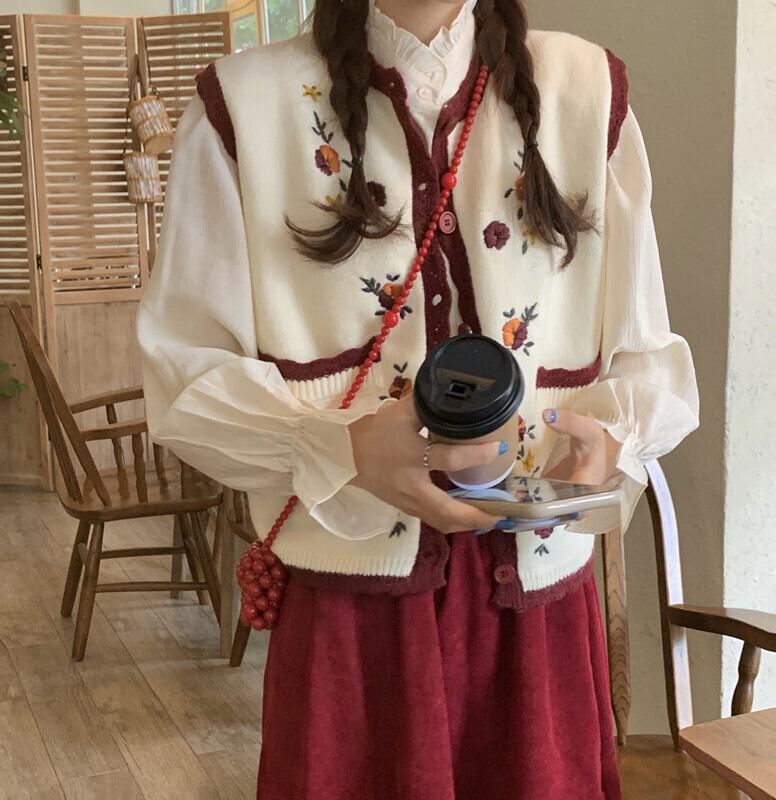 ニットスプリングセーター ノースリーブシャツ セット レッド 春物 SYJ39298784392
