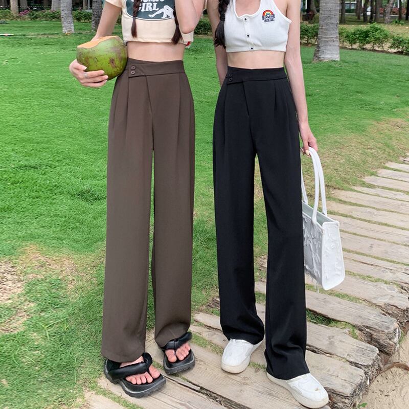 ブラックパンツ 夏服薄手ワイドレッグハイウェストウェストカジュアル 夏物 ワイドパンツ ウエスト SYJ17394814303
