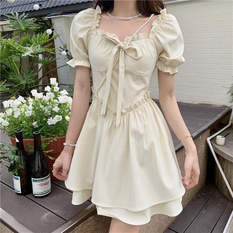 スリーブワンピース夏服スカート 大人ガーリー スウィート キュート カジュアル 夏物 SYJ14642974816