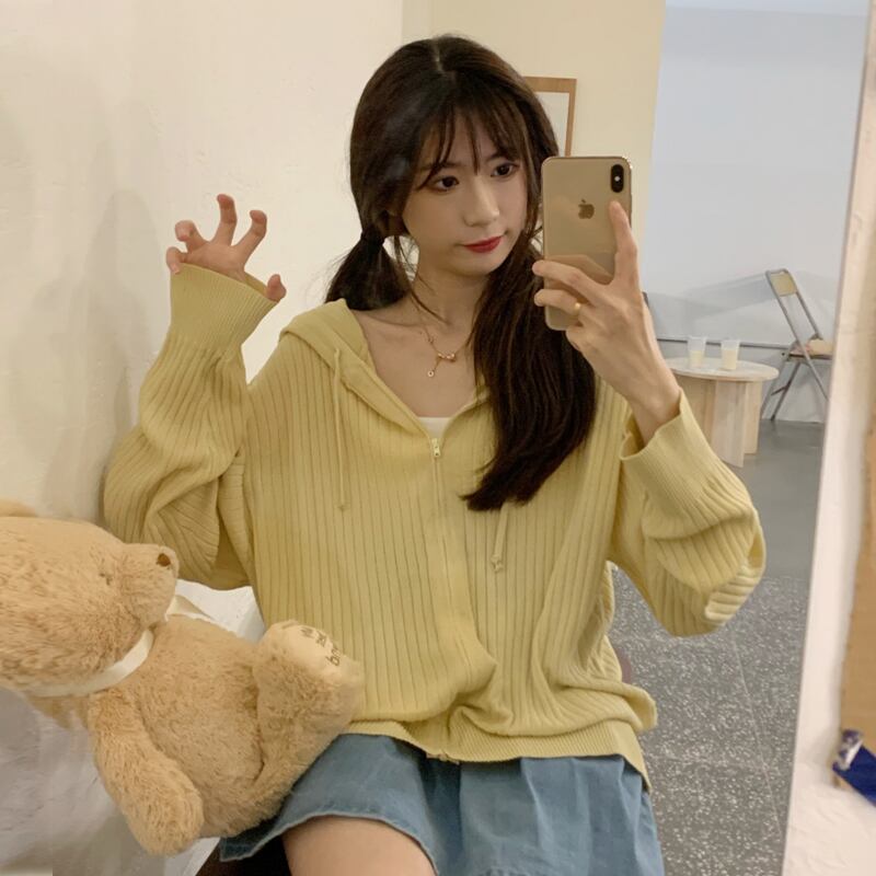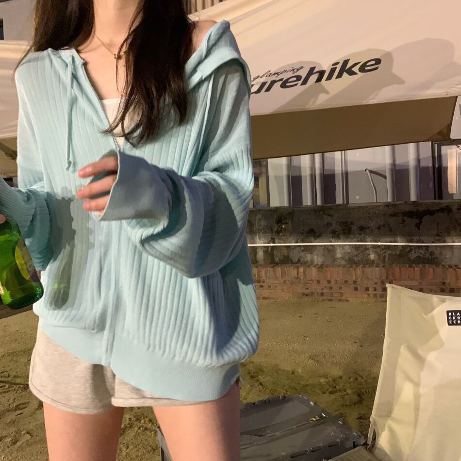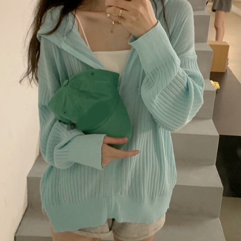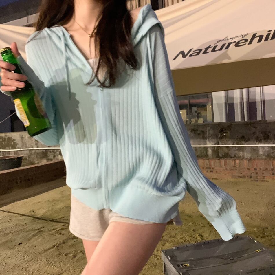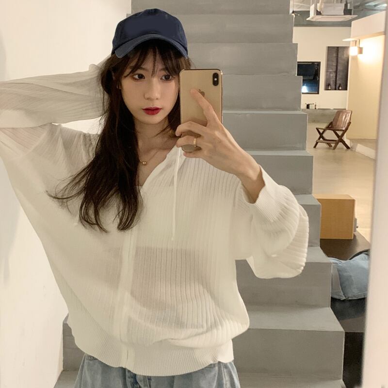 夏服薄手フードニットカーディガンジッパージャケット ブラウス 夏物 シルク SYJ56428572669