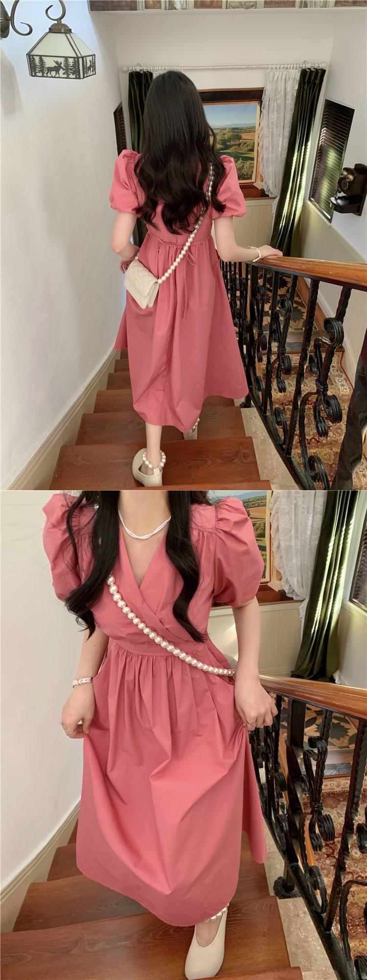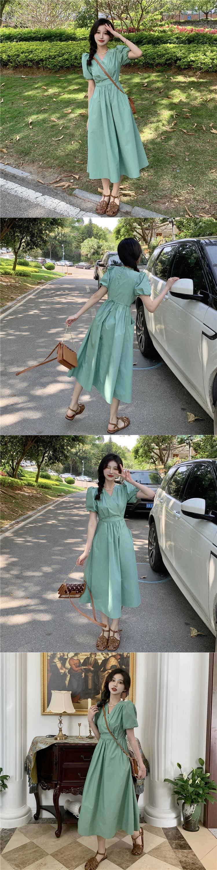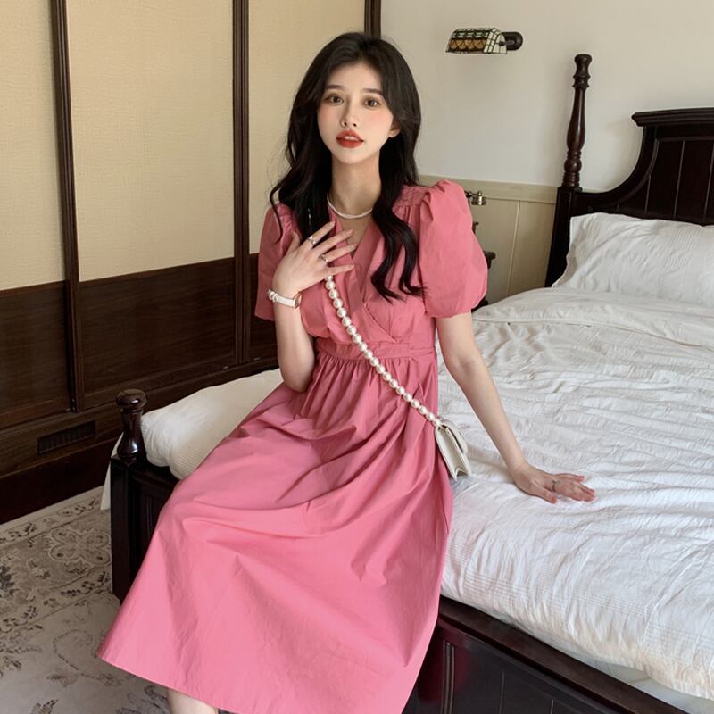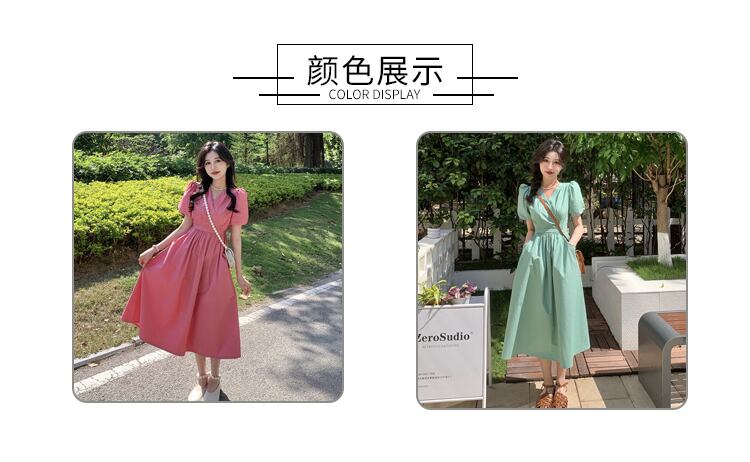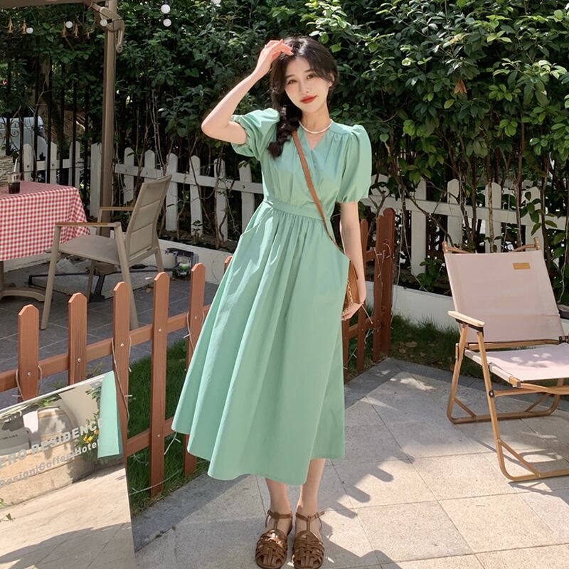 ワンピース夏服韓国ファッションスタイルウェストロングスカート 夏物 パフスリーブ ウエスト SYJ18869153785