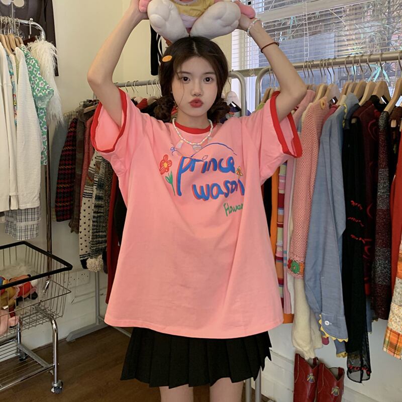 Tシャツ夏服ルーズトップス NEW レッド 夏物 SYJ70812224444