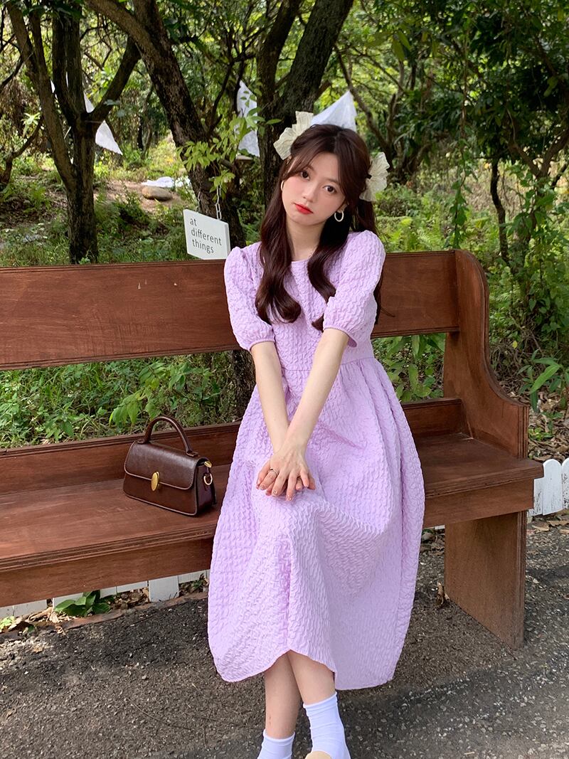 スリーブワンピースレディース夏服ロングスカート 大人ガーリー スウィート キュート カジュアル 夏物 パープル SYJ28639723216