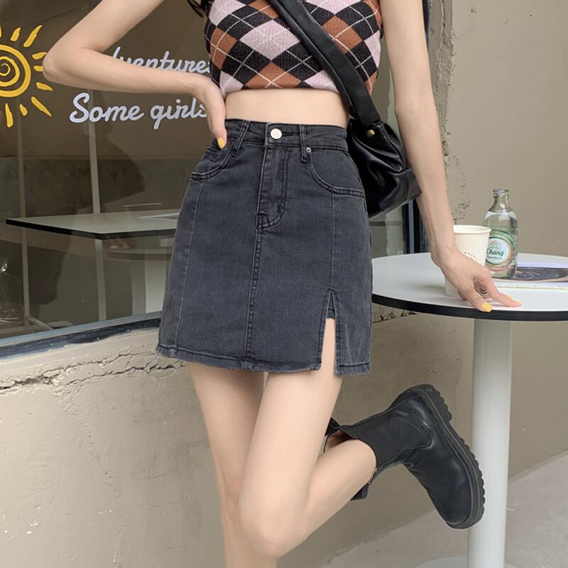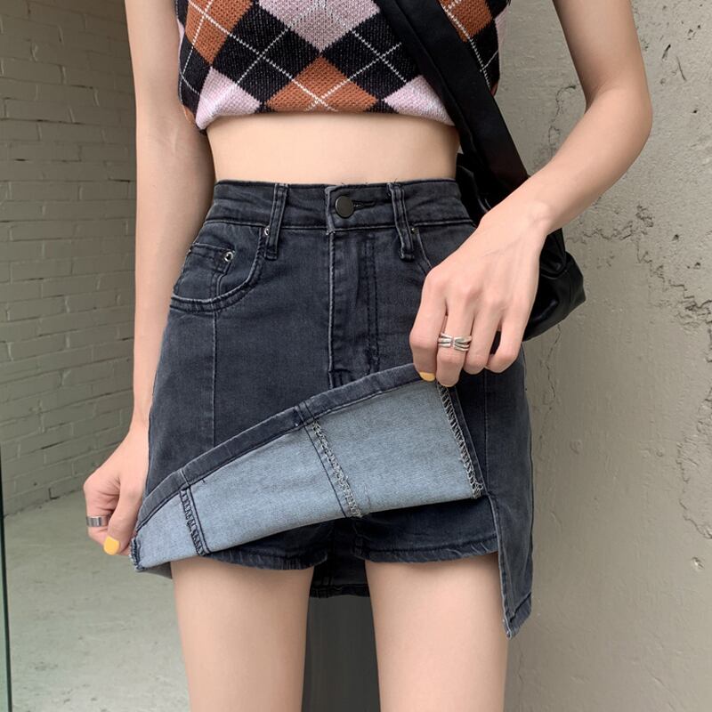 ブラックグレースカート 夏服ハイウェストウェスト薄手Aラインショート 夏物 ウエスト SYJ43918506618