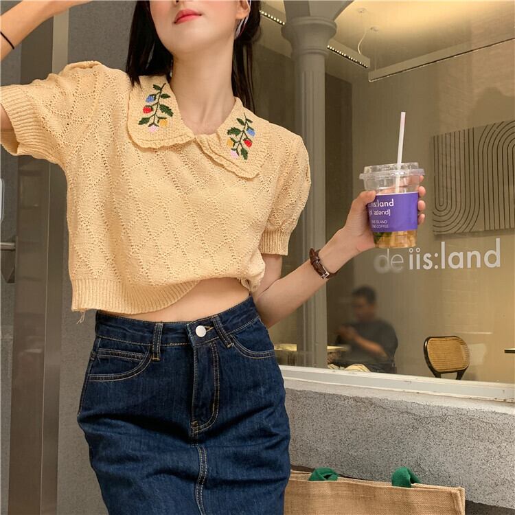 イエローニットセーター 夏服トップス 夏物 SYJ24538943723