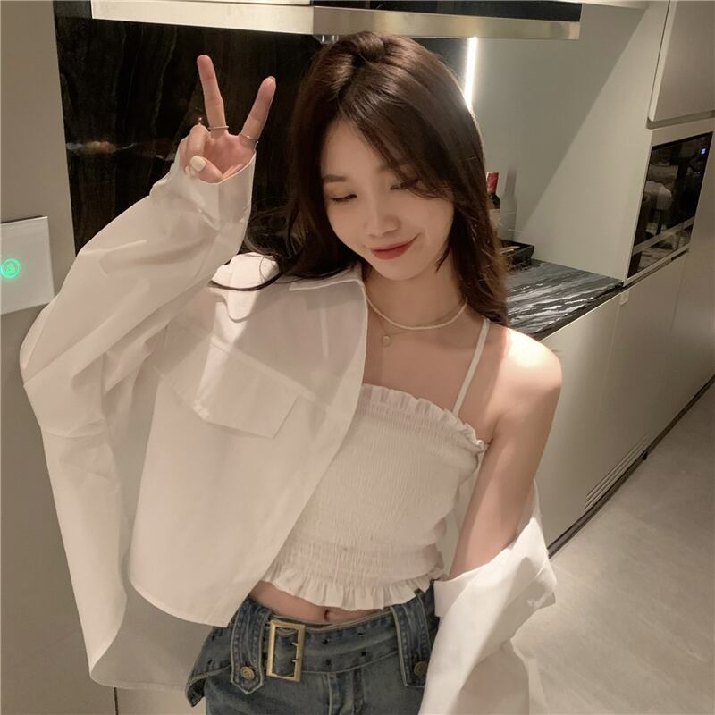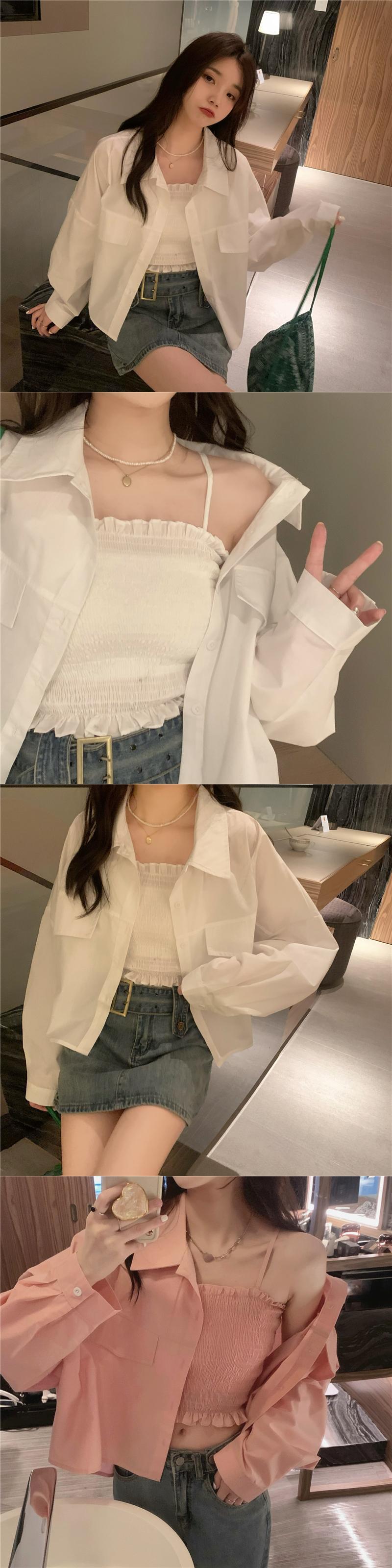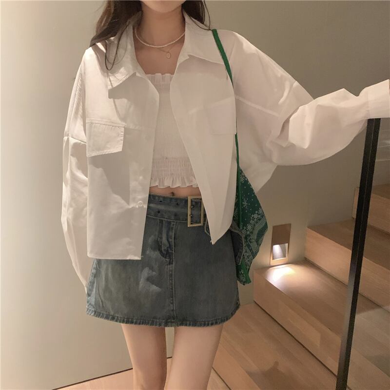 シャツ ジャケット 夏服韓国ファッションホワイトショートトップス ロング 夏物 長袖 SYJ30336811883