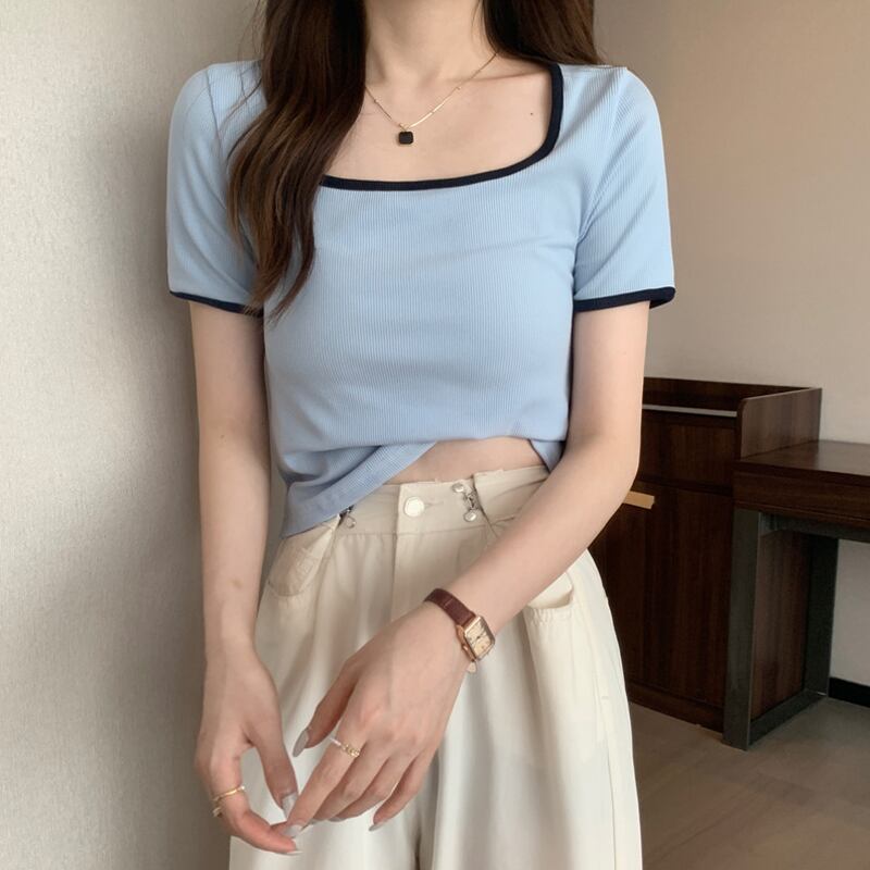 半袖スリーブTシャツ夏服グリーントップス ショート ハーフスリーブ 大人ガーリー スウィート キュート カジュアル 夏物 スクウェア SYJ36647909235