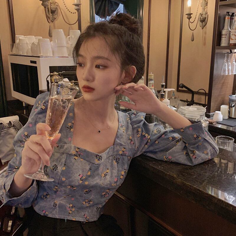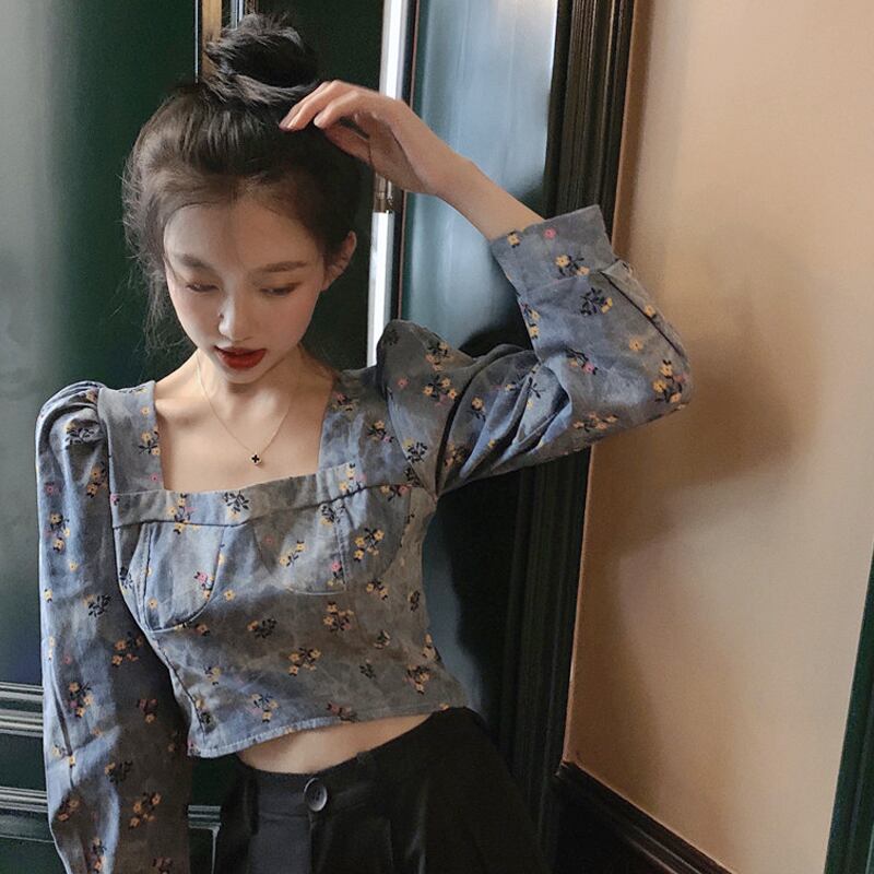 スリーブフローラルシャツ スプリングショートトップス 春物 花柄 スクウェア SYJ4812815604