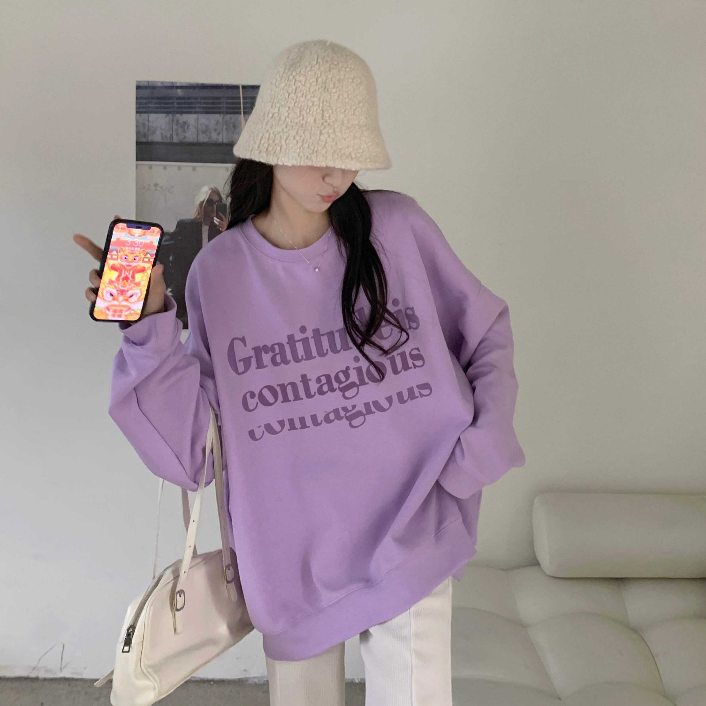 ラウンドネックセーター スプリング秋物薄手オーバーサイズトップス NEW 春物 オータム Oネック SYJ45794123772