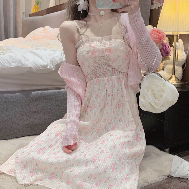 色:黄緑色のスリングワンピース,ピンクグリーンのスリングワンピース,ホワイトカーディガンワンピース,ピンクカーディガンワンピース,ワンピース黄緑色サスペンダースカート,ピンクグリーンのサスペンダースカートワンピース