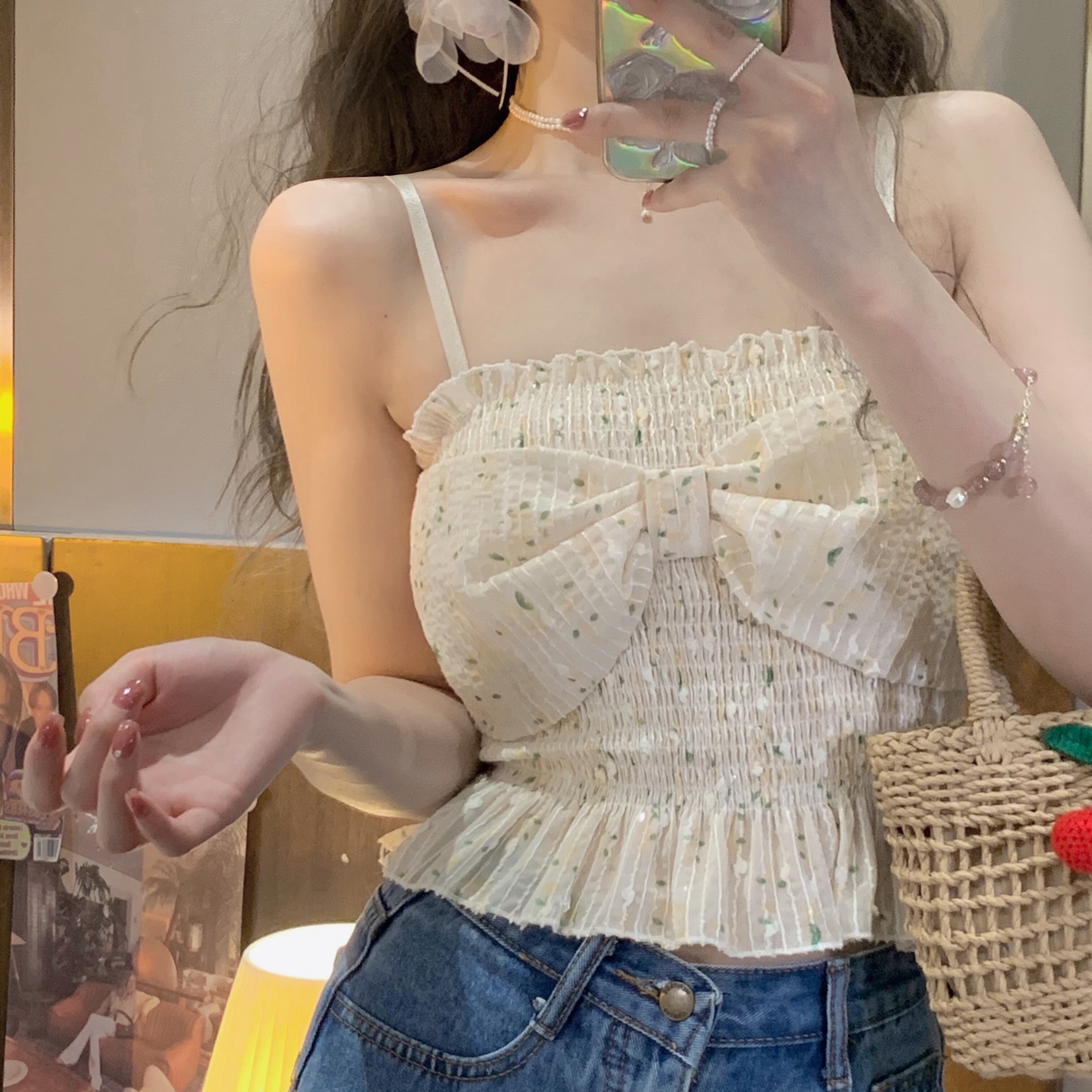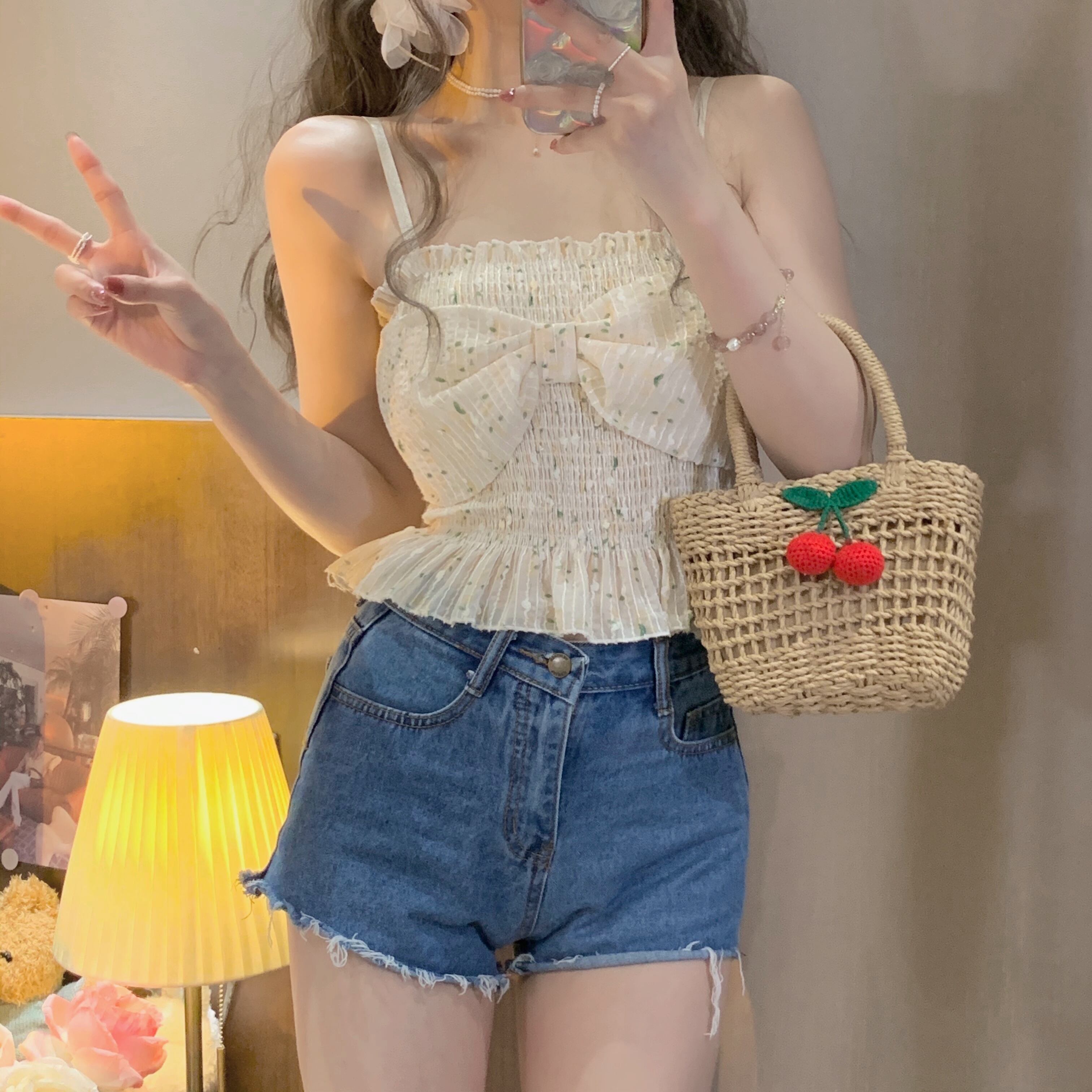 リボントップス ショート 大人ガーリー スウィート キュート カジュアル ピュア SYJ82211657803