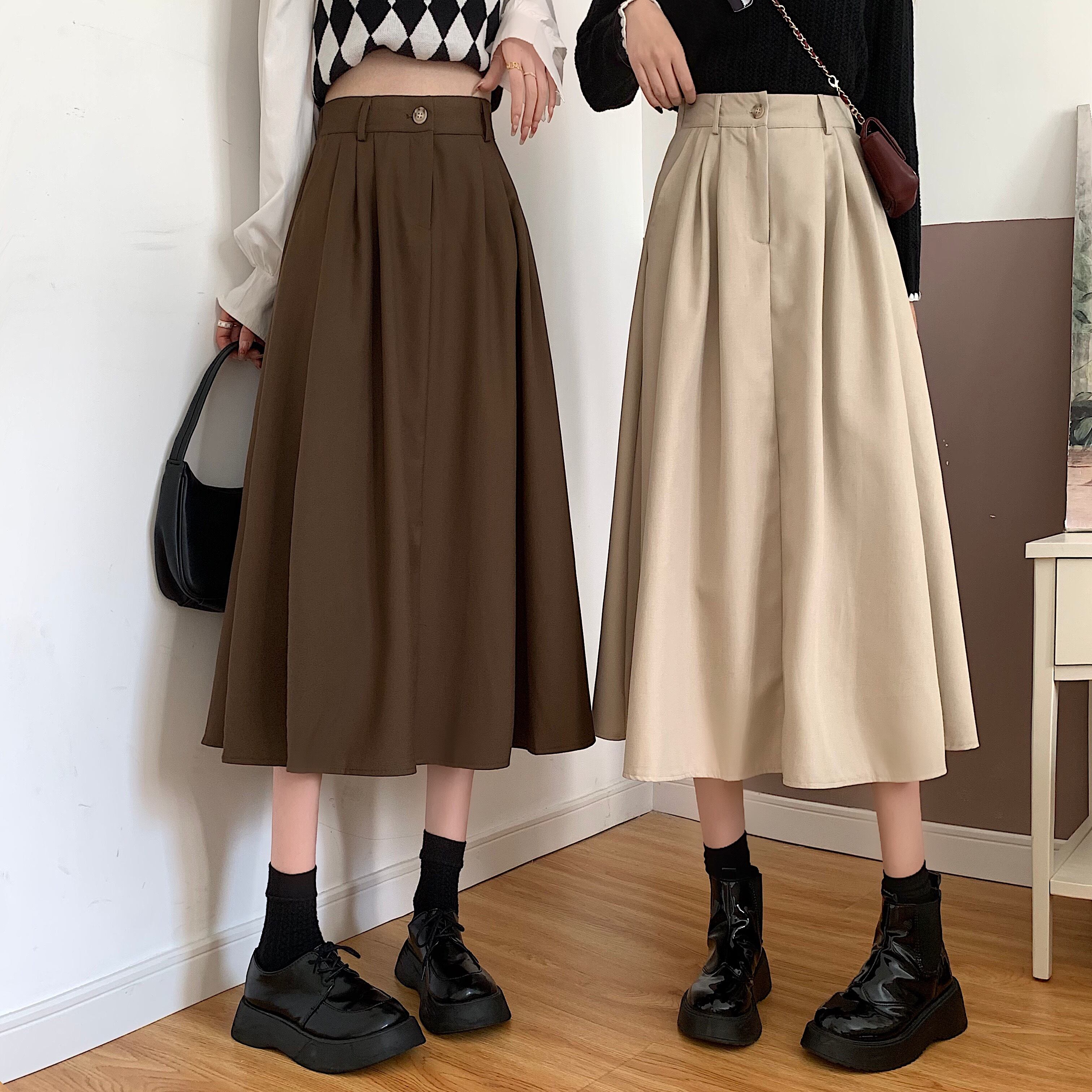 スカート スプリングハイウェストAラインNEW 春物 ウエスト ミドル丈 SYJ38243946680