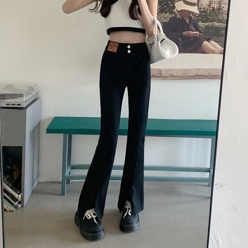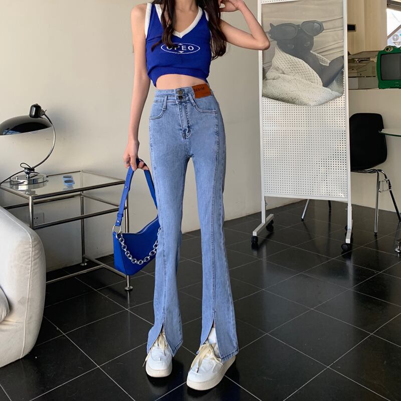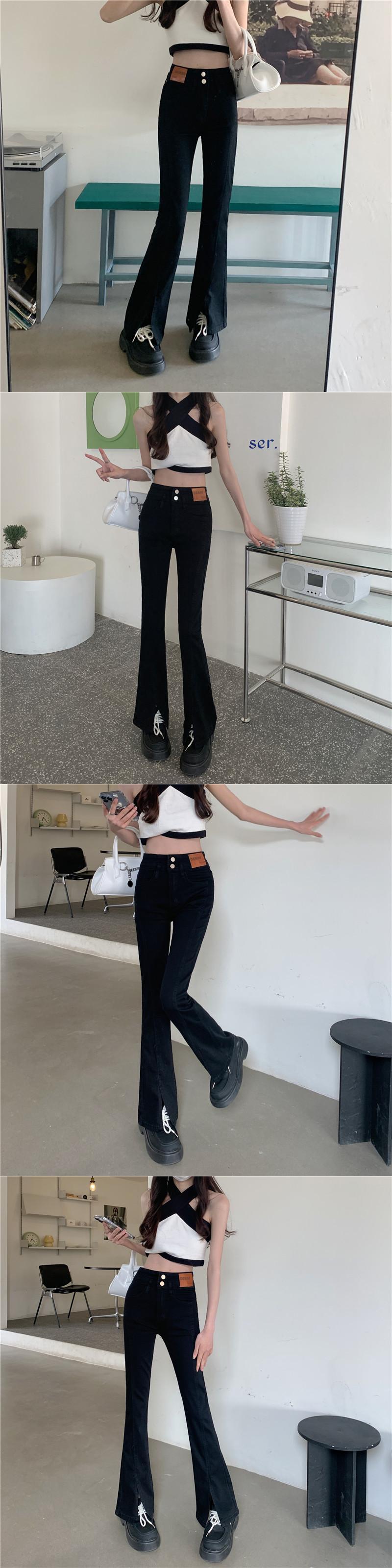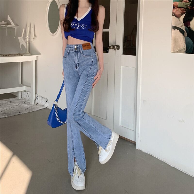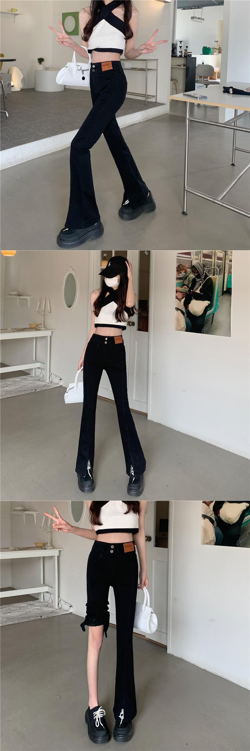 スリットジーンズ レディースパンツ スプリングハイウェストウェスト薄手NEW レッド 春物 ウエスト SYJ88637851556